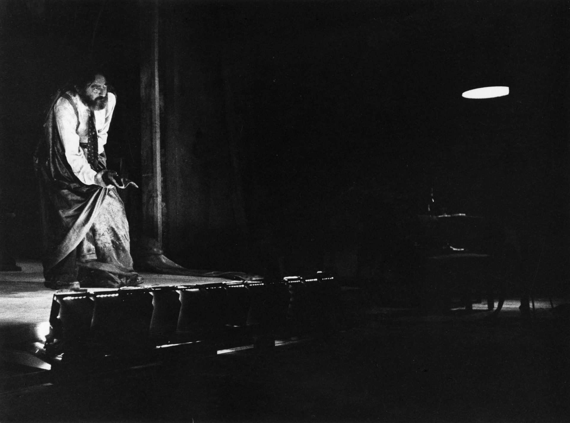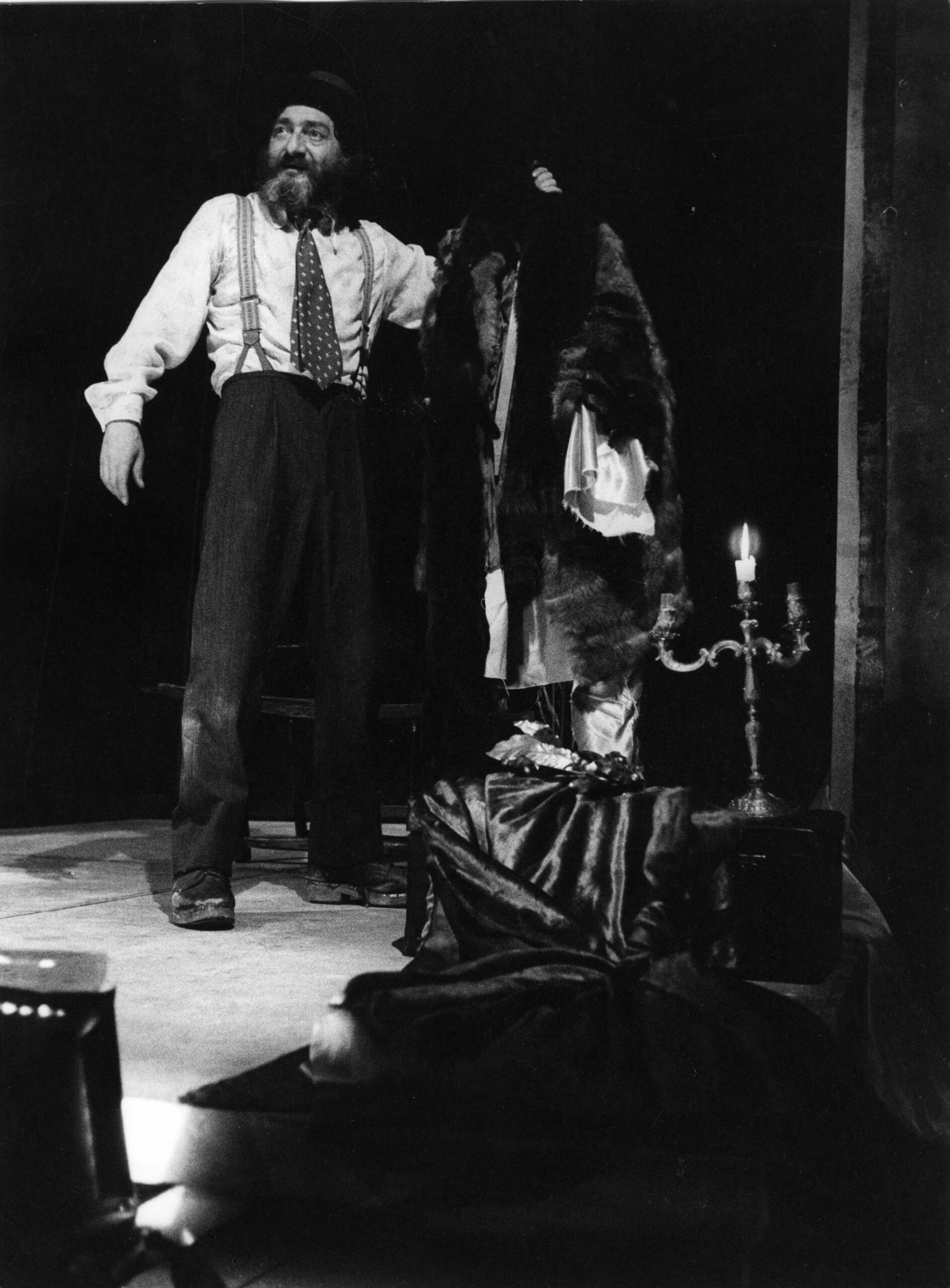 Lo spettacolo di Andrée Ruth Shammah, Franco Parenti e Gianmaurizio Fercioni è un esempio vero e raro di lavoro drammaturgico collettivo di riscrittura, di teatralizzazione sulla pratica della scena. Sul miserabile boccascena bianco sporco, dove schiude le sue prospettive il teatrino degli scarrozzanti coi suoi scenari dipinti e i pochi scenari appesi (ma tutta la sala ne è un prolungamento vitale), Franco Parenti crea un personaggio indimenticabile, sembra inventarsi su ogni battuta un testo in realtà faticosamente calcolato, esce e rientra nella pelle propria e dei diversi manichini con un’interpretazione distaccata e partecipe di una lucidità saggistica.