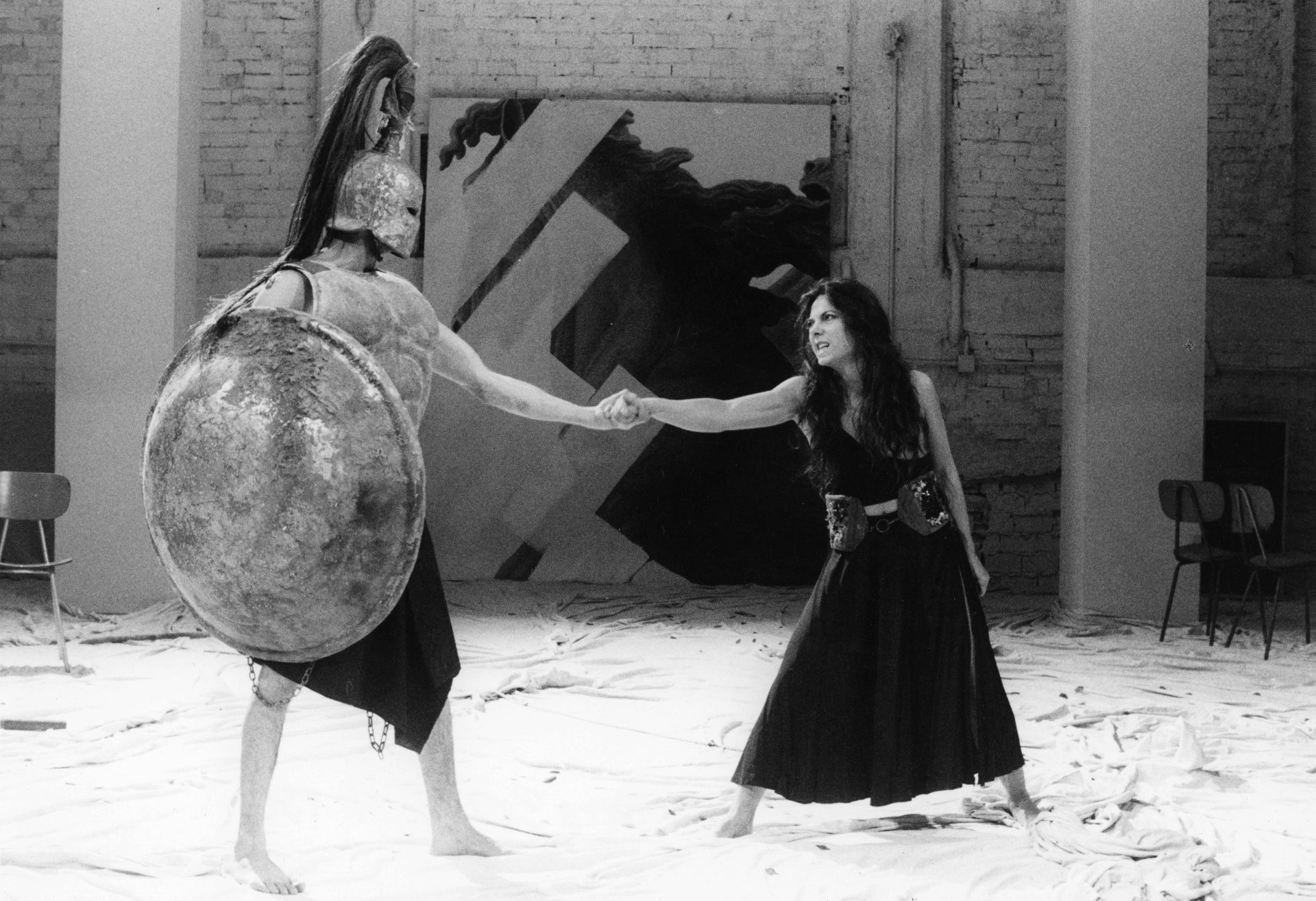 Donne forti come uomini, guerriere. Pentesilea, la regina, imbattibile. Non cercano la vittoria, quaIcos’altro. Attaccare per amare, non possono amare. La loro legge lo vieta “la parola delle prime madri così decise”. All’origine dello stato delle donne la sopraffazione degli uomini, dalla quale difendersi ripetendo su di sé una violenza, la scissione della parte fragile e vulnerabile. Per essere pari, invulnerabile. Rinunciare alla natura, la rinuncia all’amore nel gesto di Tanai, la fondatrice, che per prima si amputa un seno, per meglio governare l’arco.