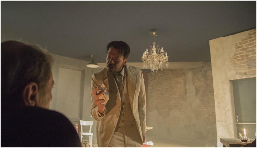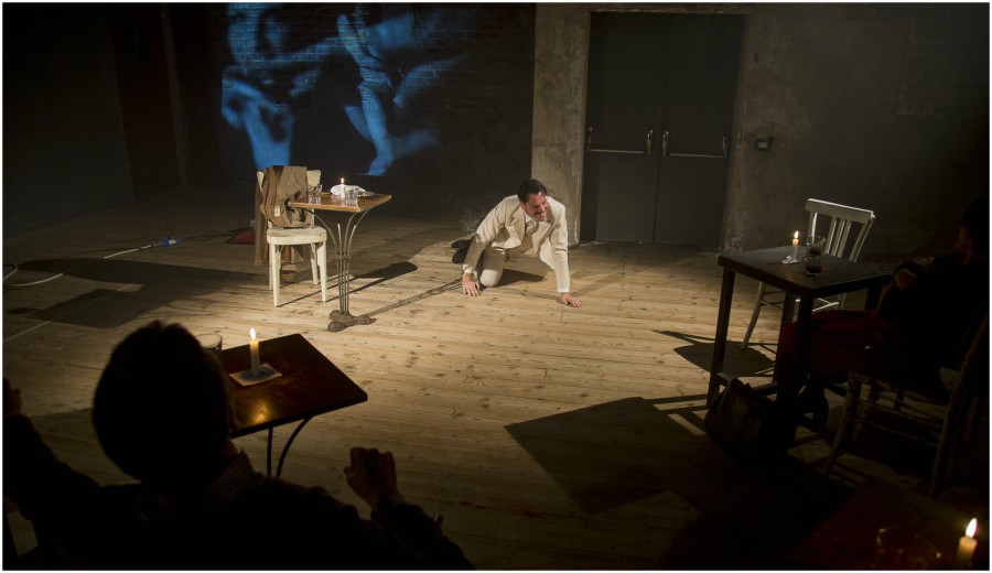 Mino Manni è fantastico a incarnare questo personaggio di Delitto e Castigo. Davanti al pubblico seduto ai tavolini diventa più che mai vivo. Spettacolo dalla grande energia che si trasmette agli spettatori, coinvolgendoli. Ma anche offrendogli una differente visione dello spettacolo dal vivo, un diverso modo di vivere il teatro, che sa essere senza barriere, grazie alla regia di Alberto Oliva.