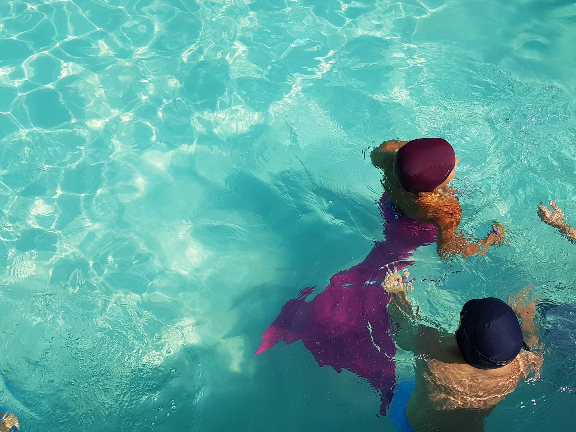 Prova di nuoto con la coda di sirena o tritone. Per bambini dai 5 anni in su, anche con i braccioli.