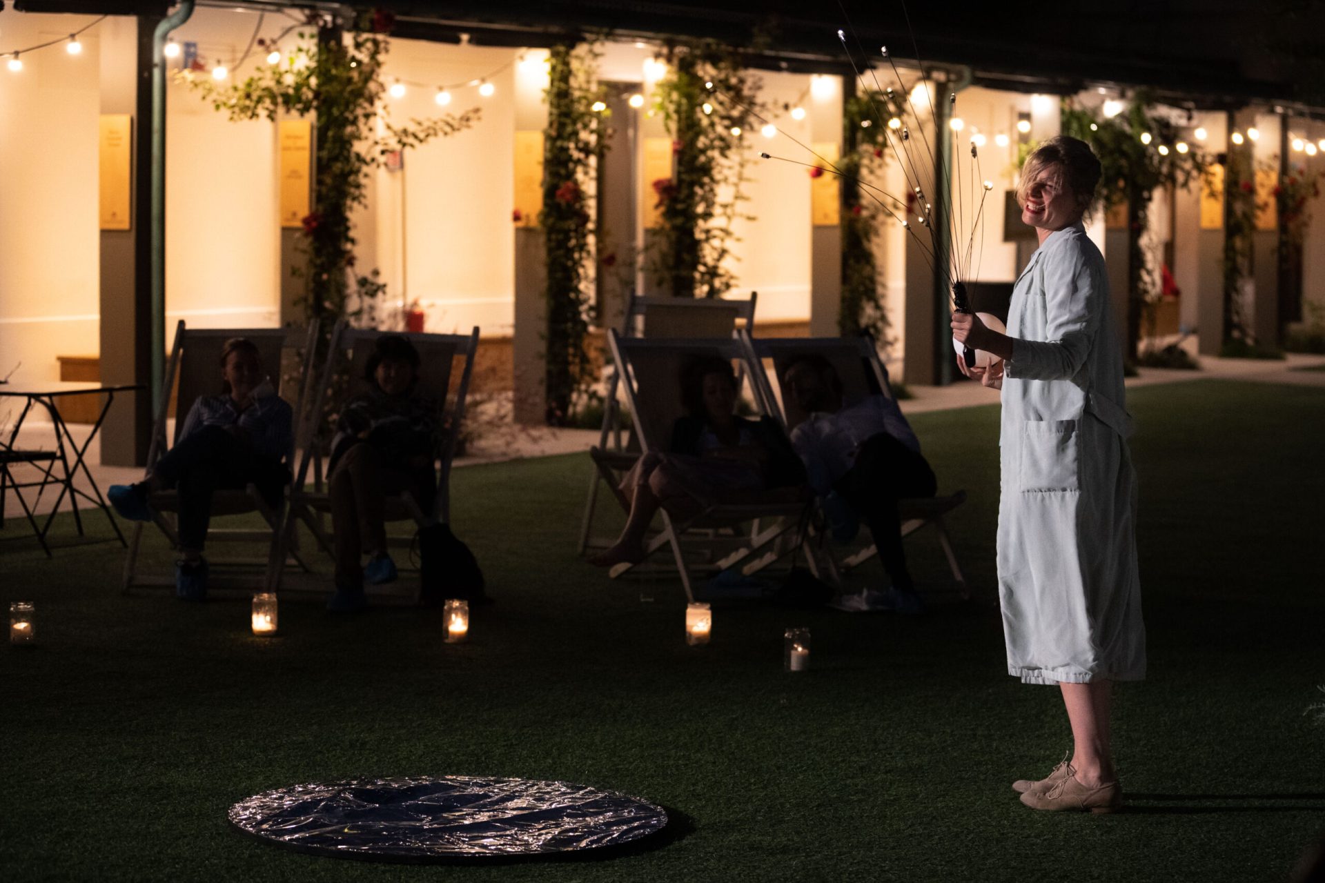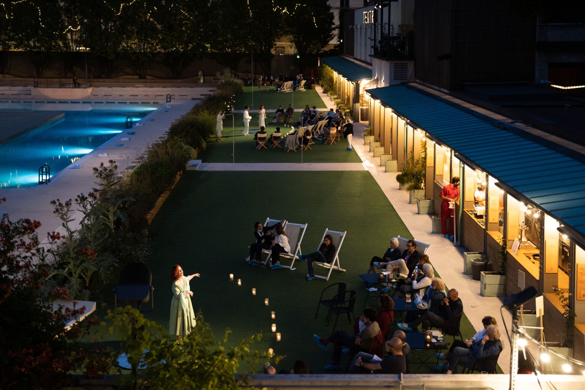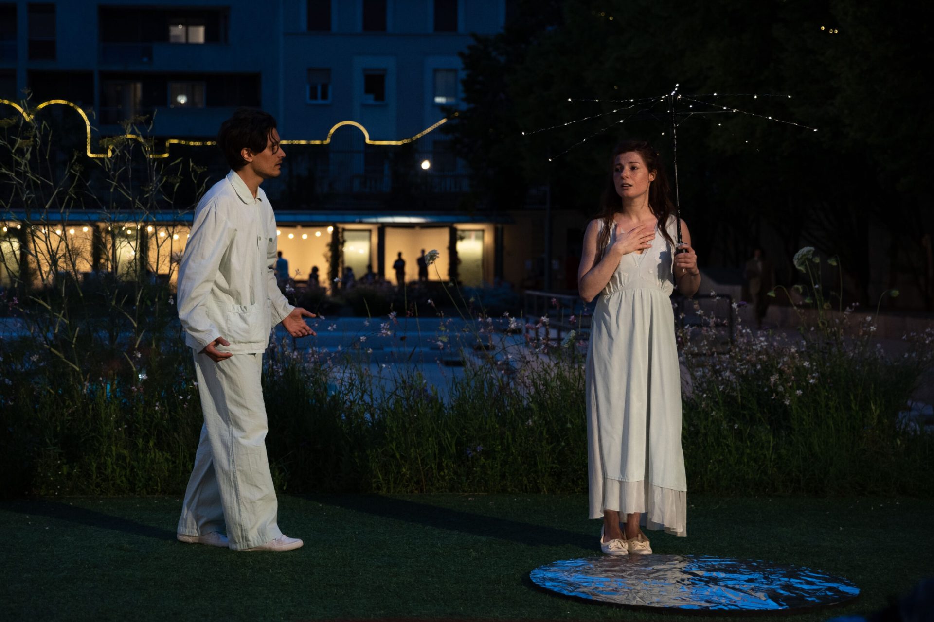 All’aperto, in sicurezza, diviso in gruppi, il pubblico andrà a sedersi in luoghi diversi della piscina e scoprirà lentamente un mondo che ritorna alla vita, che sta facendo “le prove per il futuro”. Mentre danzatori, musicisti, acrobati stanno provando i loro numeri, alcuni personaggi andranno incontro agli spettatori, animati dal desiderio di riprendere il dialogo con loro.