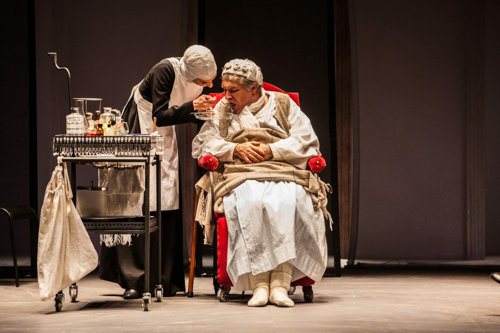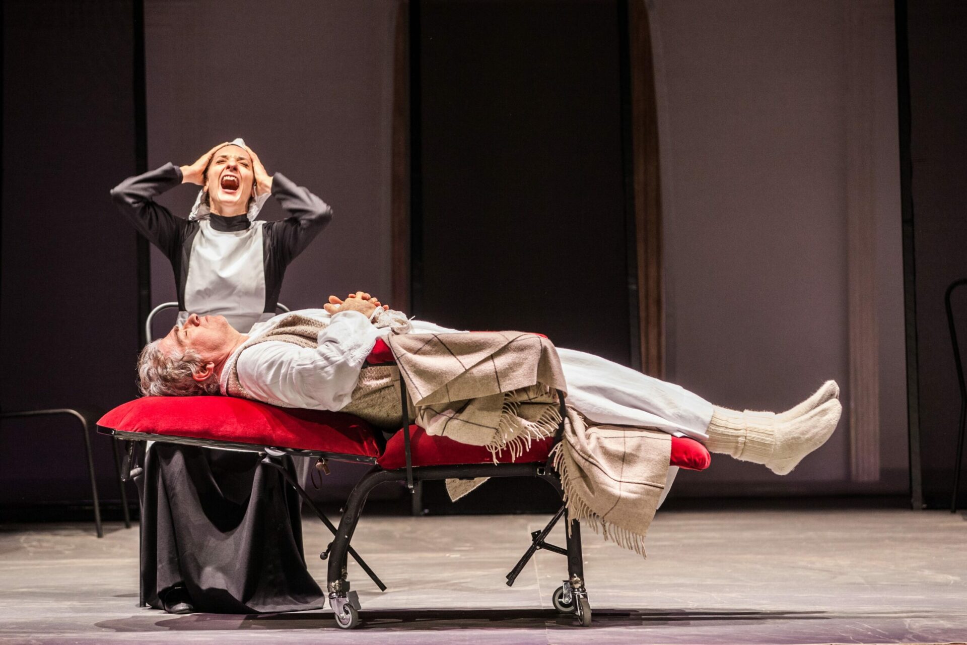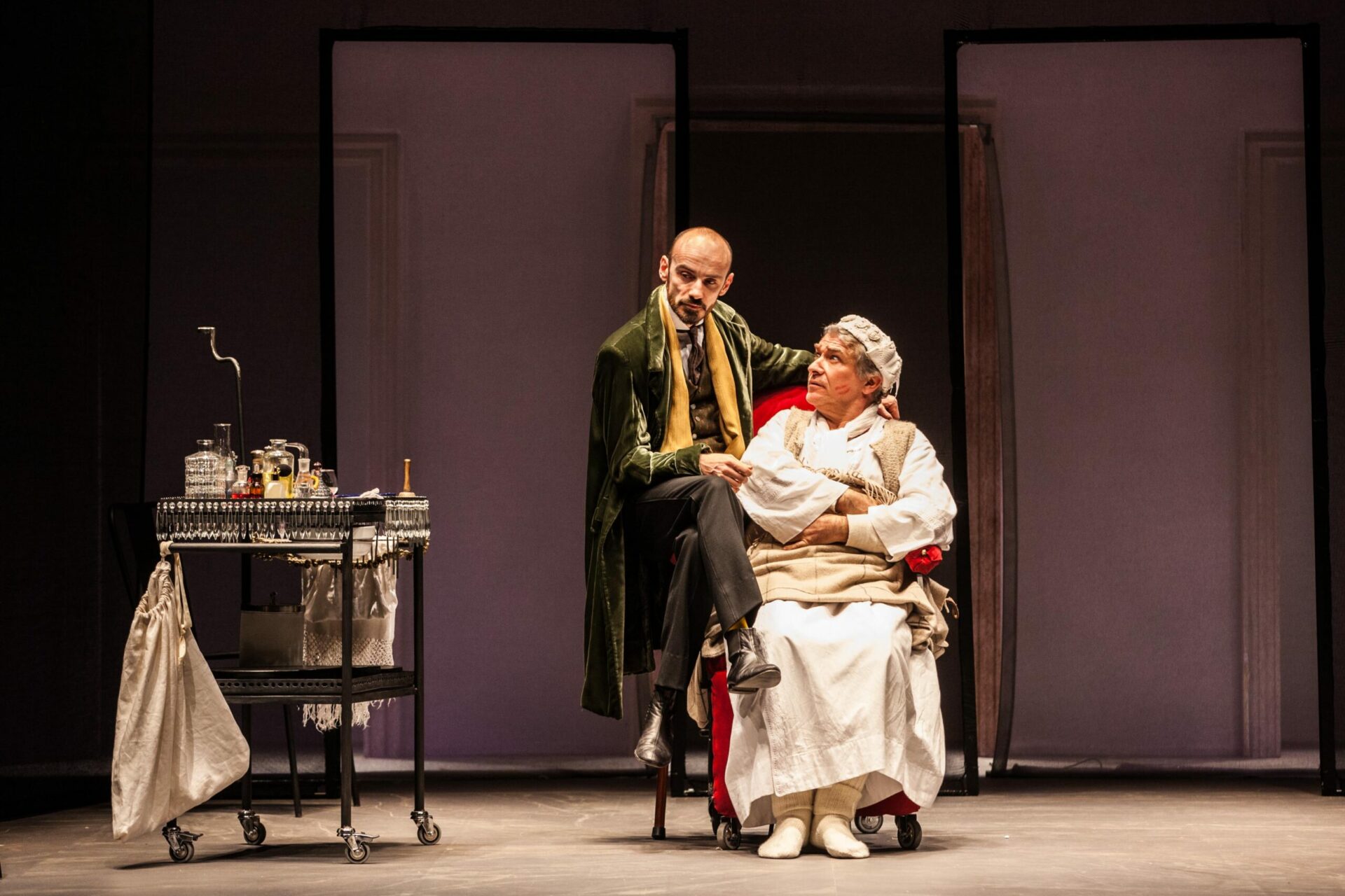 Accanto a lui Anna Della Rosa, nel ruolo della domestica intrigante, una perfetta coppia di serva e padrone, a volte bonariamente sboccata, a volte lucidamente beckettiana. La messinscena, (…) è imbastita con eleganza e sofisticheria, grazie anche alle scene e ai costumi di Gianmaurizio Fercioni, tra tulle e velluti, preziose mantelle e lampadari luccicanti. Affianca i due bravi protagonisti un ottimo cast (…) ben affiatato, dal perfetto tempismo comico, ma mai gigionesco, nonostante le risate del pubblico e gli applausi a scena aperta.