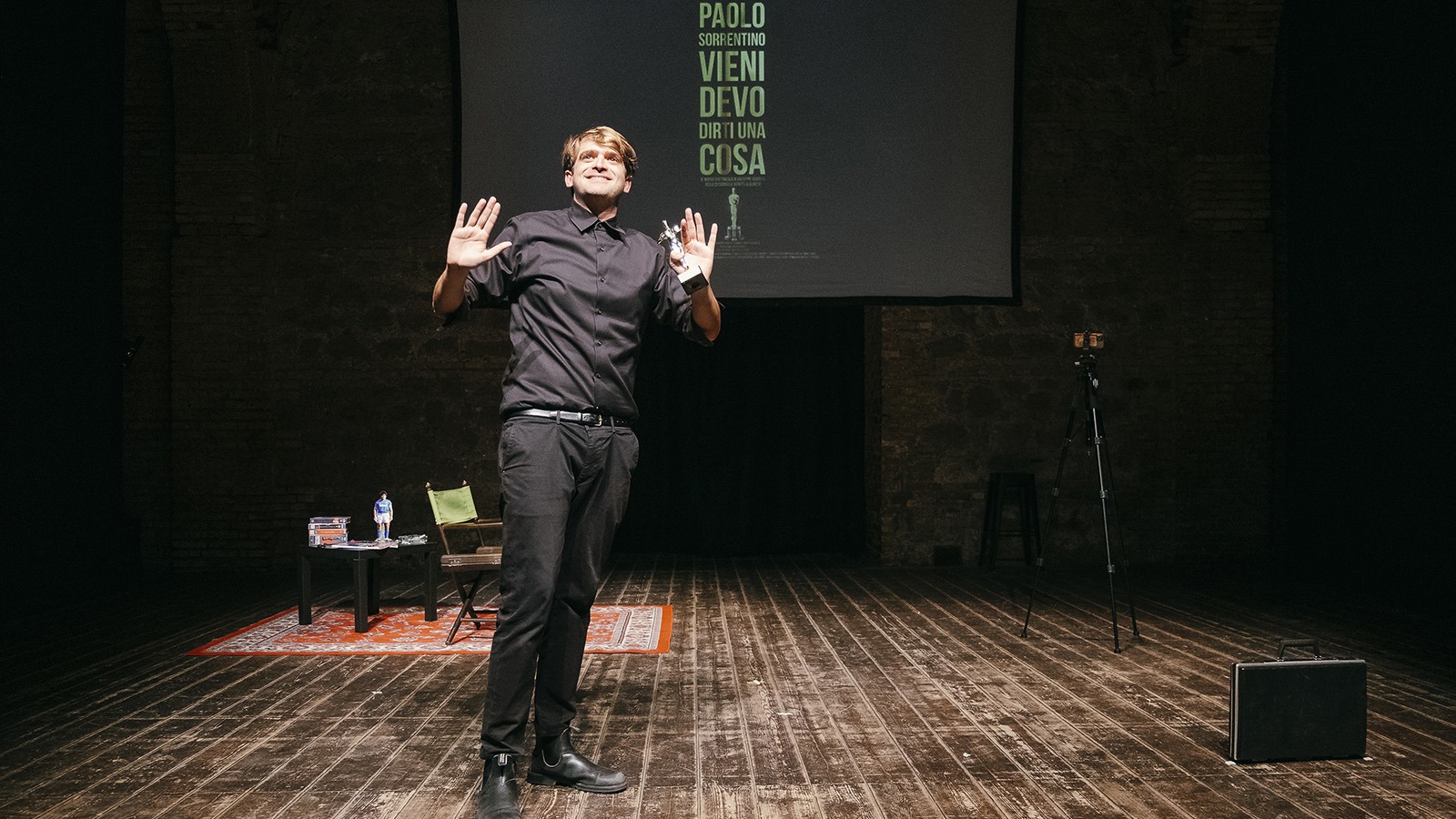 Nel 2018 ho fatto un provino per un film di Paolo Sorrentino – spiega Scoditti – E non sono stato preso. Adesso vorrei dire delle cose a Paolo. Tutto quello che non gli ho detto dopo quel no. Questo spettacolo nasce esclusivamente per questo motivo.