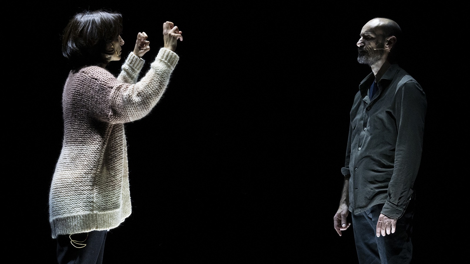 La pièce di Nick Payne raccontata alla maniera di Raphael Tobia Vogel è un’esperienza coinvolgente e suggestiva. Il regista sembra ormai trovarsi a proprio agio nel portare in scena storie fantastiche che sottendano questioni esistenziali e morali profonde: si pensi a Per strada di e con Francesco Brandi o al futuristico Marjorie Prime di Jordan Harrison, tradotto come Costellazioni da Matteo Colombo.