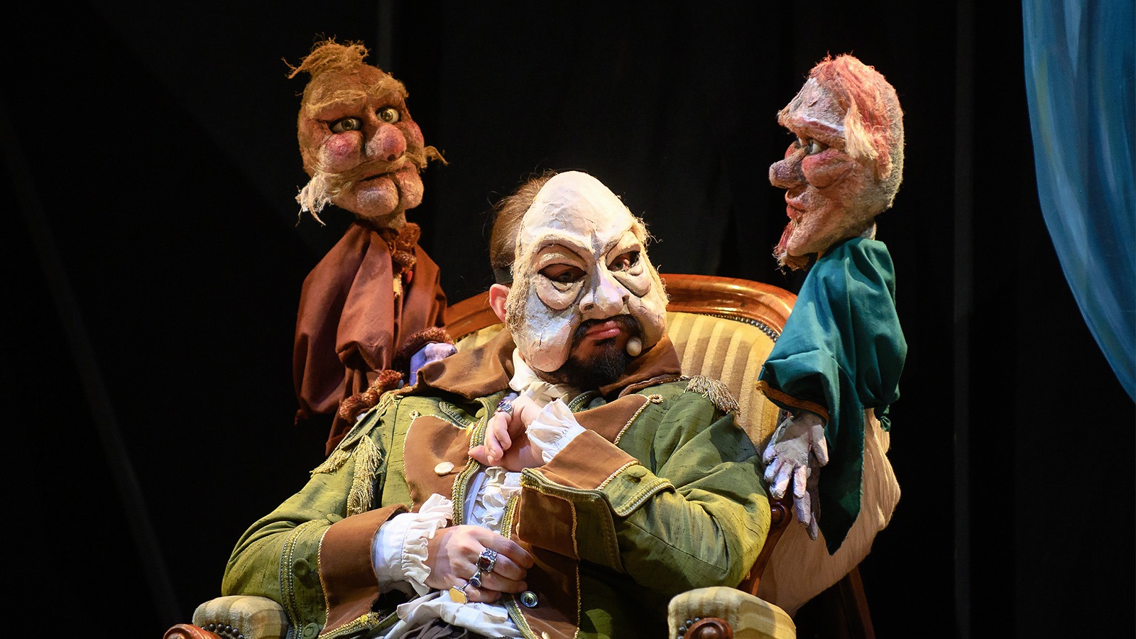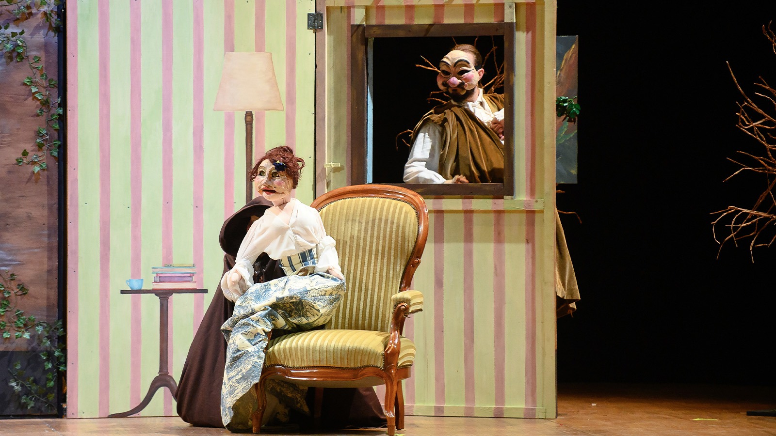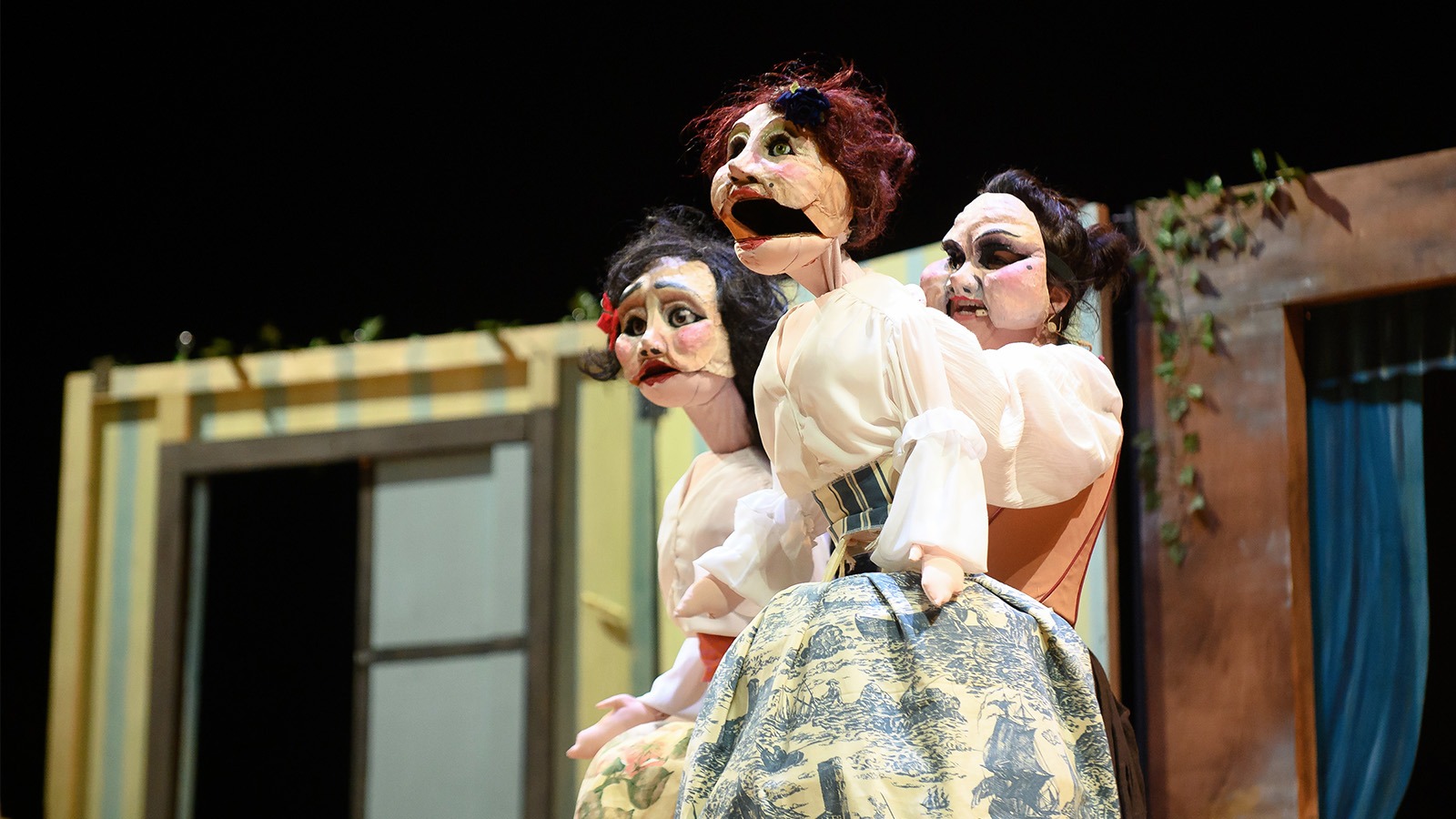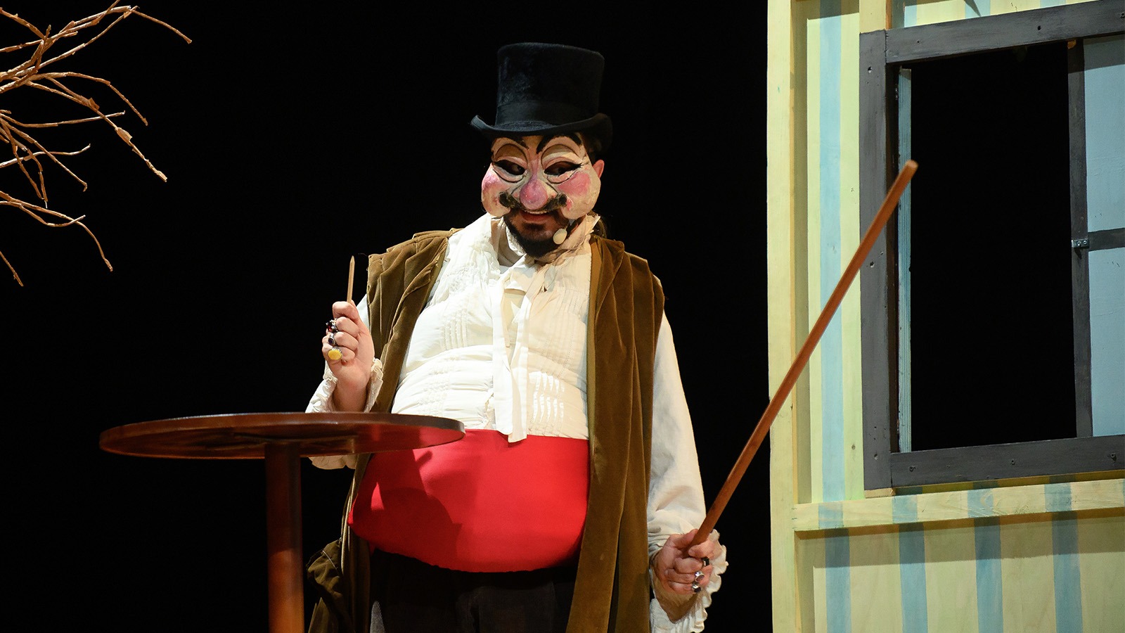 Falstaff è un’opera grandiosa. Sin da subito ho capito che lavorare al “mio” Falstaff, sarebbe stata una scommessa non facile: era stimolante e contemporaneamente paurosa l’idea di mettere mano a un’opera tanto puntuale ed efficace in ogni suo elemento compositivo. Nella mia visione, ho immaginato per i bambini e le bambine un mondo che conoscono e riconoscono e che può metterli, sin da subito, a loro agio. Falstaff diviene così una sorta di burattinaio Mangiafuoco, un vecchio artista scanzonato e in malora che, a corto di danaro, cerca stratagemmi per sopravvivere, costruisce intrighi e cerca soluzioni, come, d’altronde, accade spesso a noi artisti! Ma, il Burattinaio solitamente è un puro, non tradisce, non imbroglia. Quindi, questa volta, sono i suoi burattini e le nostre pupazze ad avere onore, loro che appartengono al mondo della finzione, divengono nella mia rivisitazione, l’unica cosa vera. Sono loro a essere onesti, sono loro che, proprio come i bambini e le bambine, davanti all’imbroglio ridono, si divertono, ma poi desiderano rimettere tutto al loro posto. Tutti e tutte vogliamo bene a Falstaff, ma sappiamo che va “smascherato”! Arrivo qui anche dopo un ragionamento sulla fine e straordinaria scrittura drammaturgica di Boito (e ancor prima di lui del genio shakespeariano) che in alcuni suoi punti sembra proprio essere scritta per dialoghi tra burattini, con quella velocità, quel cinismo, quella scaltra ironia che disegna un perfetto ordito per una delle arti più antiche al mondo. Inoltre, i personaggi dell’opera, ricalcano alcune figure fisse della commedia dell’arte, e allora scelgo le maschere, per travestire i miei personaggi e uniformarli al mondo che voglio disegnare. Le figure femminili sono le più interessanti, non sono arrendevoli, ma giocano e scelgono. Sono complici per lo stesso fine. Sono scaltre, allegre, consapevoli. Sono donne che prendono decisioni, che affinano inganni, non si lasciano intimidire dalle figure maschili, ma sono proprio le donne a essere le deae ex machina dell’intera opera. E, se questo mostrare il femminile così fiero poteva essere rivoluzionario ai tempi di Verdi, io credo che, ahinoi, possa essere molto importante ancora oggi, per tutti i motivi che conosciamo. Soprattutto parlarne all’infanzia, senza forzature ma cogliendo ogni occasione, ci permette di attivare quello che, per me, è una delle maggiori funzioni del teatro per le nuove generazioni. Entriamo così in un mondo che si trasforma in continuazione, popolato da maschere, burattini, piccole e fugaci ombre e marionette, un mondo senza tempo, che ricorda le fotografie di tempi andati con la vividezza del presente, un mondo con cui ben si sposa la magia dell’ultimo atto del Falstaff… quel mondo in cui tutto è burla