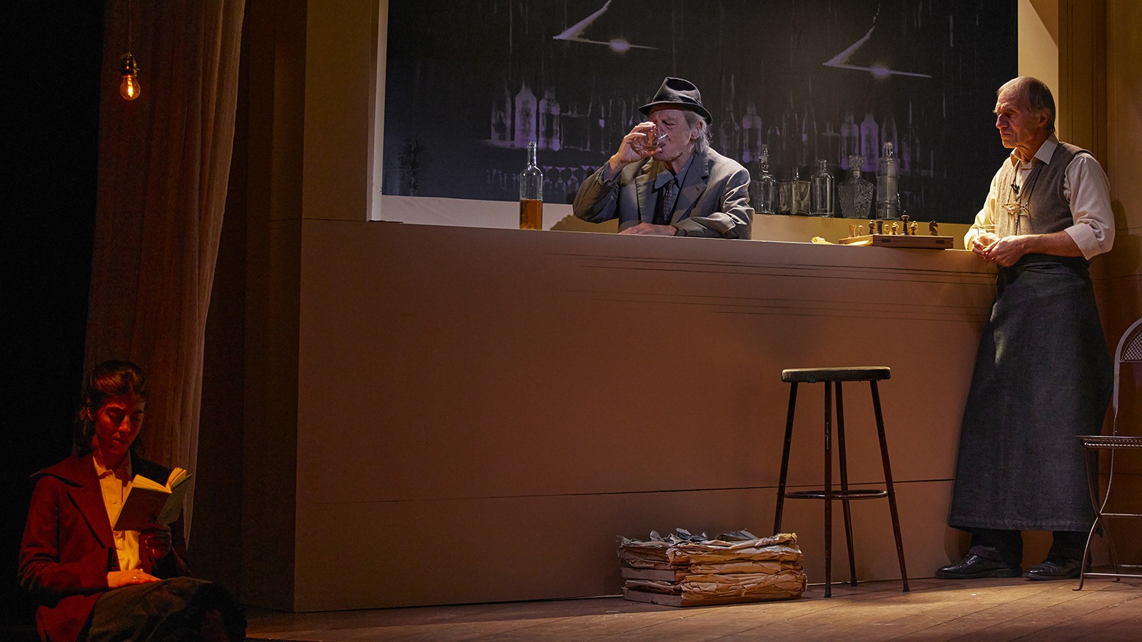 La fine regia di Andrée Ruth Shammah situa la vicenda, che assume i colori dell’apologo, in un bar anni Trenta (…) e tratteggia l’impossibilità di agire del protagonista, la sua vicenda raccontata come un’inquietante discesa nel delirio, ma sopratutto nell’impotenza, in quella oscurità ubriaca e piena di lampi che scandisce i suoi ultimi istanti di vita.