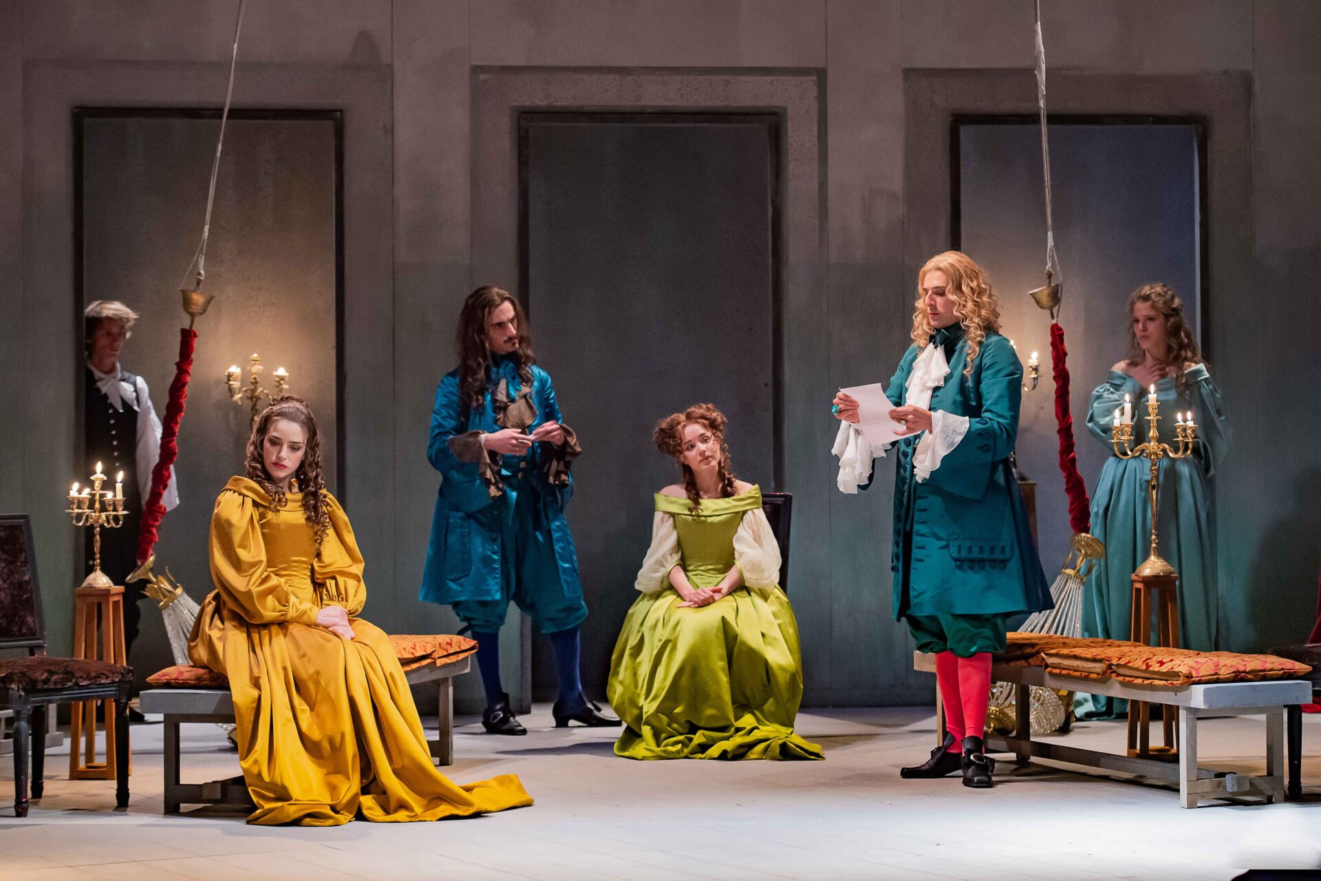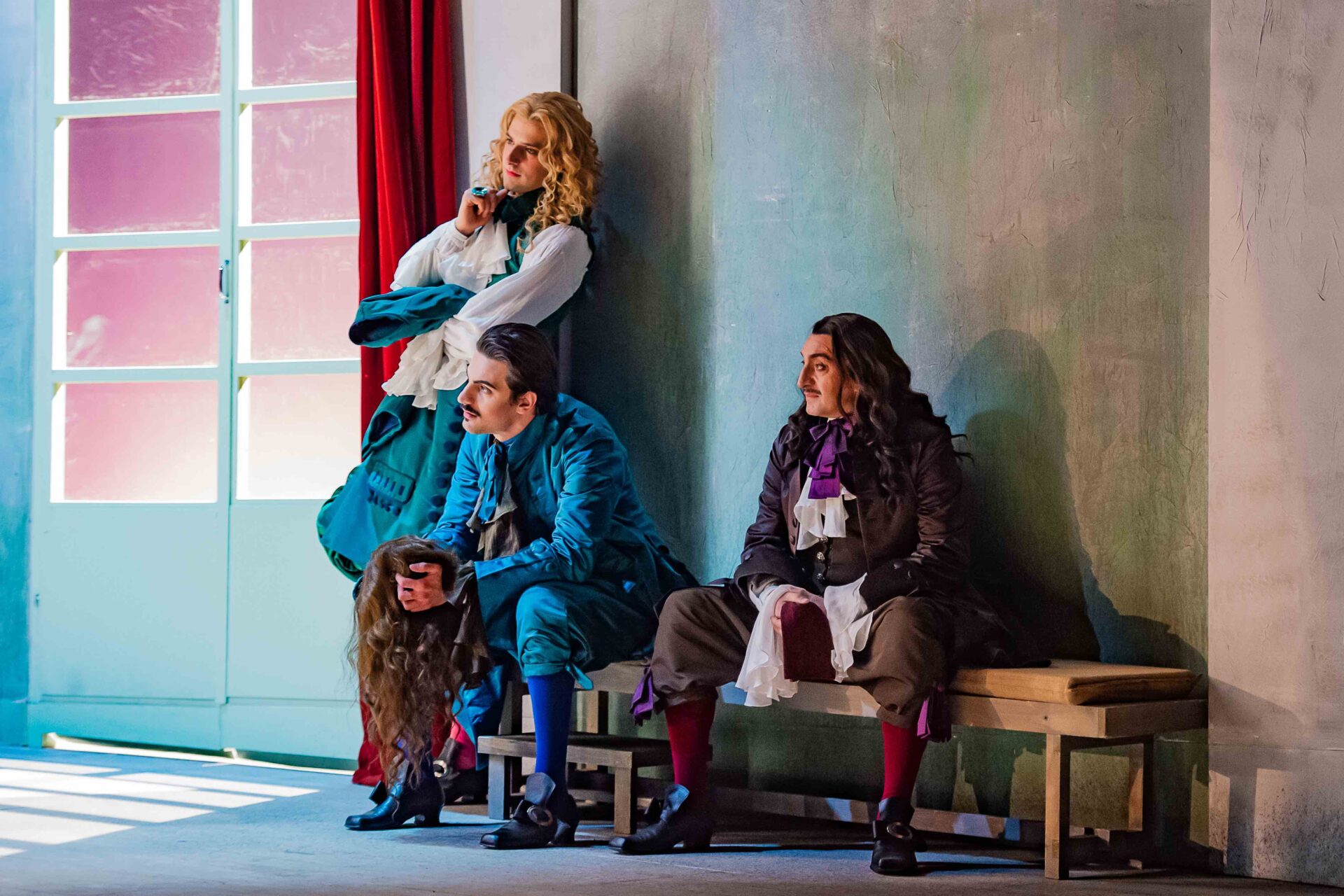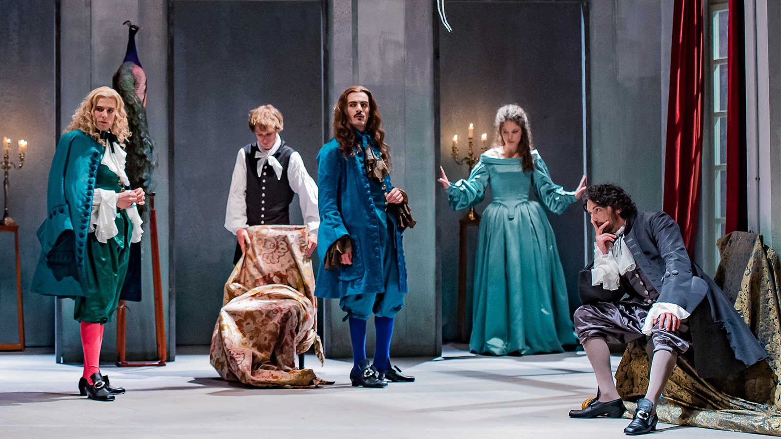 I costumi usciti dal laboratorio del Parenti, curati nei dettagli, aiutano a definire ulteriormente i personaggi. Non a caso Alceste è vestito di nero, colore che lo differenzia dagli altri personaggi che indossano abiti variopinti e dalle fogge molto più elaborate. Anche in questo il misantropo segue una sua coerenza, rifiutando la vanità e l’inutile sfarzo dei tempi che furono, o sono ancora, perché nulla è mutato?