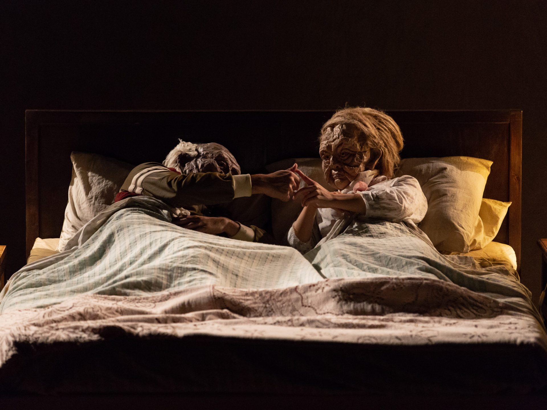 Con o senza maschere, i sei fantastici attori del Teatro dei Gordi diretto da Riccardo Pippa studiano la seduzione di gesti e sguardi, il corpo in corsa «contro» la parola sedentaria (viene in mente «Giganti della montagna» di Strehler). Prima tutti si agitano nel fulgore speranzoso e ripetitivo della giovinezza, immersi in una globale sensualità collettiva, poi si raccolgono in capricci di caramelle accanto a devoti assistenti, sempre in camera, ormai mascherati da vecchi rugosi ma dentro mantenendo l’incoscienza della promessa eternità. Occhieggiano gli ospitali Filemone e Bauci, il cui mito è ispiratore ed è inutile dire quanto tutto ciò sia condiviso, specie con la magia di un teatro «misto» dove i sentimenti sono al comando di una poetica che coglie nel quotidiano una porzione di eternità.