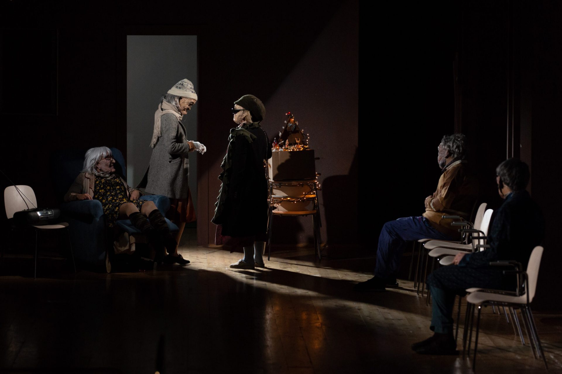 È uno spettacolo che scardina gli stereotipi sulle nuove generazioni, accusate di essere restie al sapere, disinteressate a una visione complessa dell’esistenza e, soprattutto, vittime della rivoluzione tecnologica con la sua banalizzazione del reale. Non dura poco, questo “balletto della vecchiaia”, cosa che ci costringe a viverlo anche noi; pian piano, ci sentiamo meno minacciati e riusciamo a cogliere l’ironia, nelle azioni all’apparenza vuote degli anziani, e poi l’intensa dolcezza che sprigiona dalla loro condizione ammalorata; fino al finale, un piccolo capolavoro che ovviamente non sveliamo.