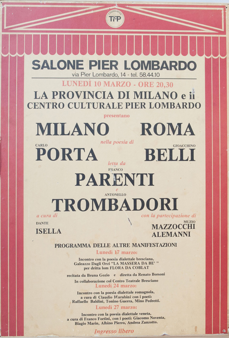 Vengono presentate negli anni ’90 Le serate del Pier Lombardo, organizzate con Guido Vergani in collaborazione con Repubblica, in memoria di Milly, Padre Turoldo, Gianni Brera, Franco Fortini, e poi con il Corriere della Sera, Dentro le parole, libertà, solidarietà, progresso, dedicate a personaggi come Carlo Emilio Gadda, Dino Buzzati, Valentino Bompiani, serate con scrittori come Manuel Vasquez Montalban intervistato da Gianni Minà, incontri con personaggi Gorbaciov a Milano con Michail Gorbaciov intervistato da Enzo Biagi, Demetrio Volcic, Giulietto Chiesa, memorabili serate a tema dove il teatro incontra la parola, come quelle su internet con Giorgio Strehler, Grande party per Alberto Arbasino, le serate dedicate a Ottiero Ottieri con Umberto Eco, Carlo Cecchi, Cesare Garboli, o sulla cultura di destra e cultura di sinistra.